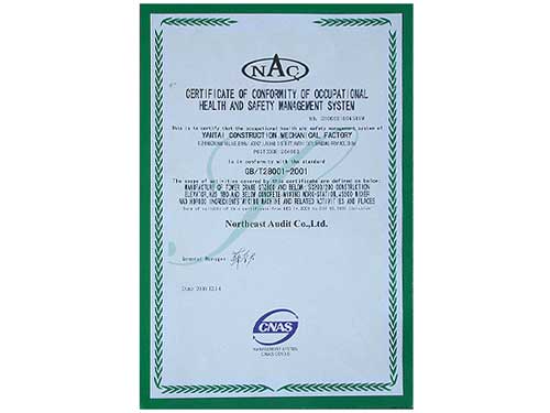 職業健康安全管理體系認證證書