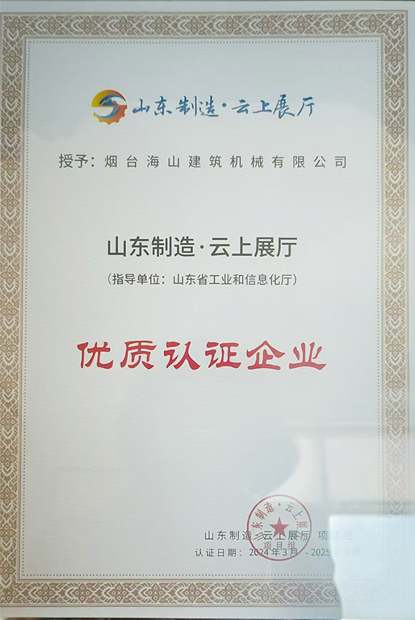 2024年獲得山東制造.云上展廳 優質認證企業